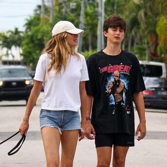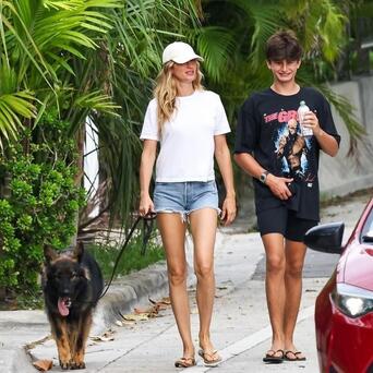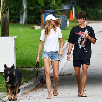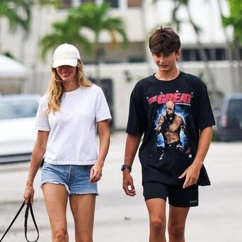 #夏日生活打卡季# 果然高颜值靠强大的好基因!看看“吉娘娘”吉赛尔·邦辰的儿子Benjamin的强大基因!堪称完美复制黏贴了父母的高颜值基因,15岁拥有和妈妈Gisele Bundchen一样的同款大长腿!就在最近,这位国际超模被拍到和大儿子Benjamin带着在迈阿密外出遛狗,休闲穿搭,素颜出镜,各穿一件T恤配短裤,脚踩人字拖,一头同款发量,浓密自然卷,完美复制“吉娘娘”和前夫哥汤姆·布雷迪(Tom Brady)的高颜值好基因,真实又接地气,令不少网友纷纷夸赞:“论基因的重要性”、“儿子的头发和她一样,又黑又厚。”