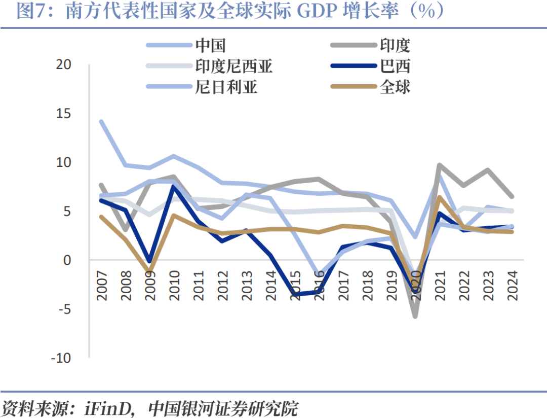 “全球南方”深度参与的新型合作机制蓬勃发展。金砖国家机制、中国-东盟自贸区、中非合作论坛、上海合作组织等南方国家平台快速壮大。这些组织不仅在金融、贸易、基础设施等传统议题上形成南方合作网络,也在制度层面提出替代性方案,例如推动本币结算、建立新型开发银行、改革全球治理架构等。这一系列制度层面的探索与实践标志着“全球南方”正从被动适应转向主动塑造国际规则,为其经济实力的进一步跃升奠定了至关重要的制度基础。